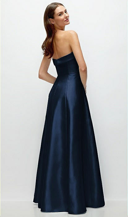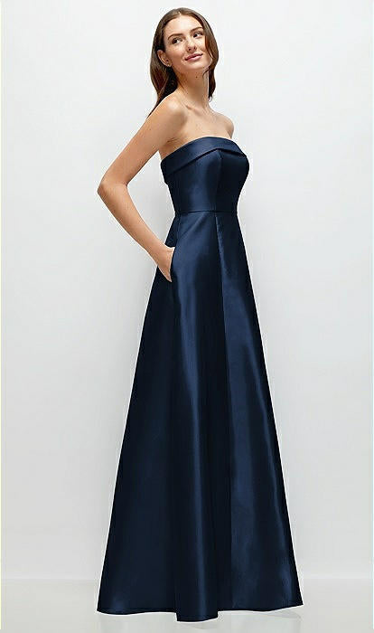 .... Cette superbe robe longue bustier en satin sergé dégage une sophistication absolue grâce à son élégante encolure à revers coupée en biais. Vous vous sentirez comme une princesse en tournoyant sur la piste de danse dans cette magnifique tenue....
