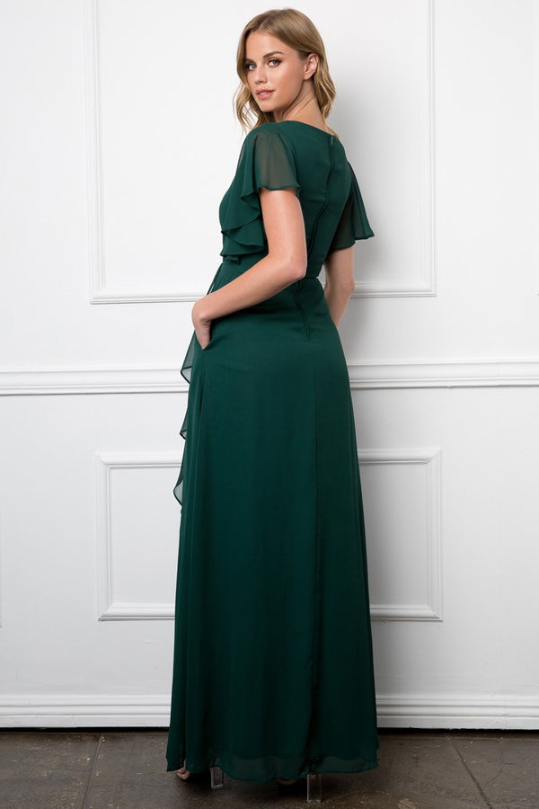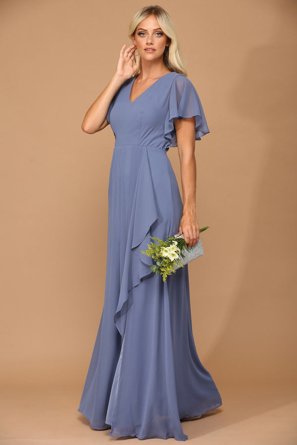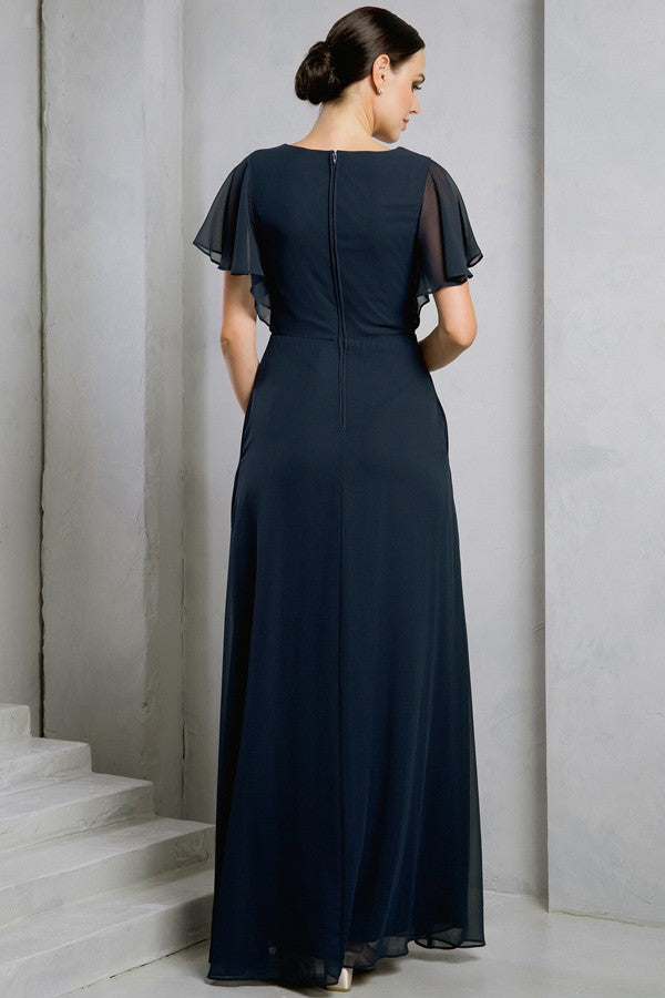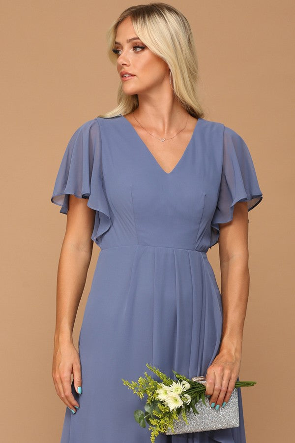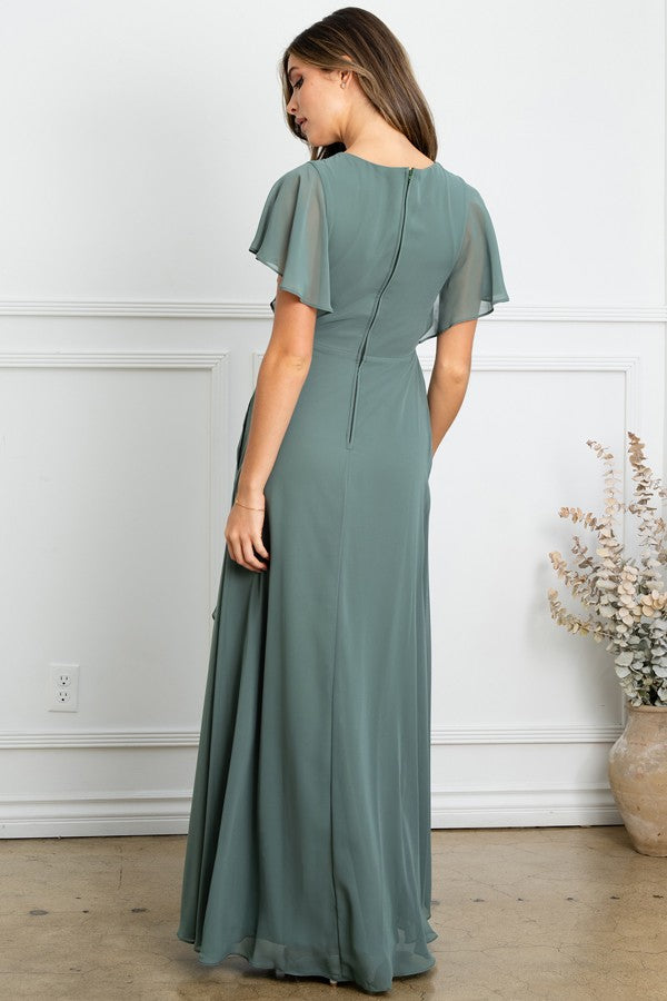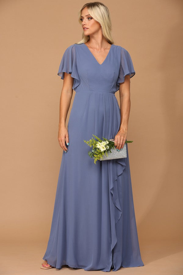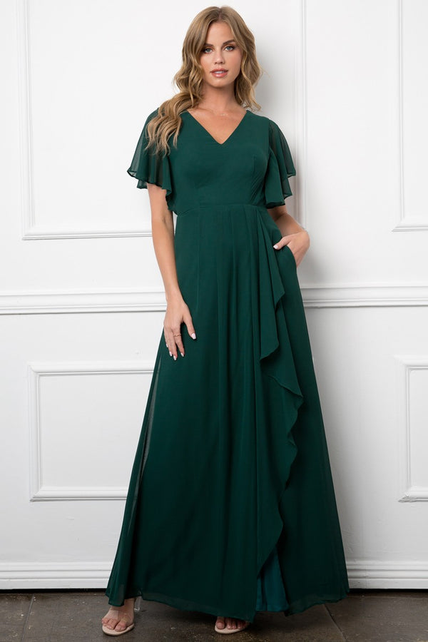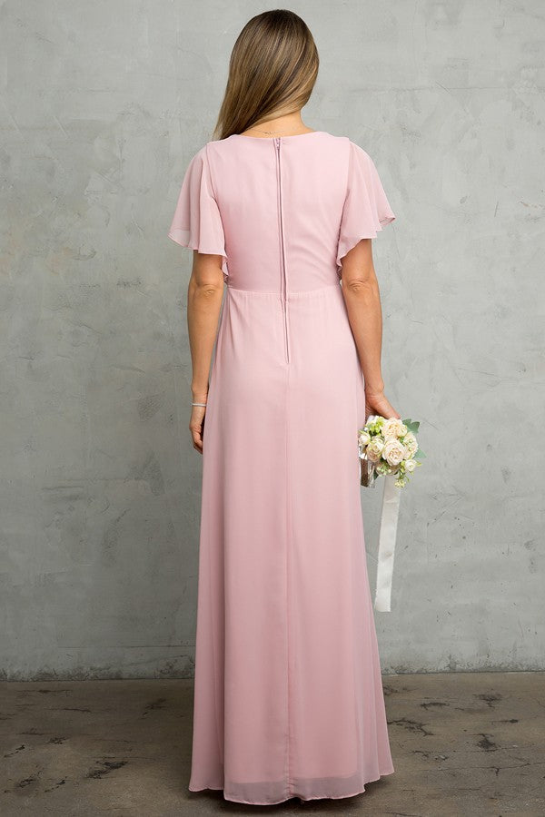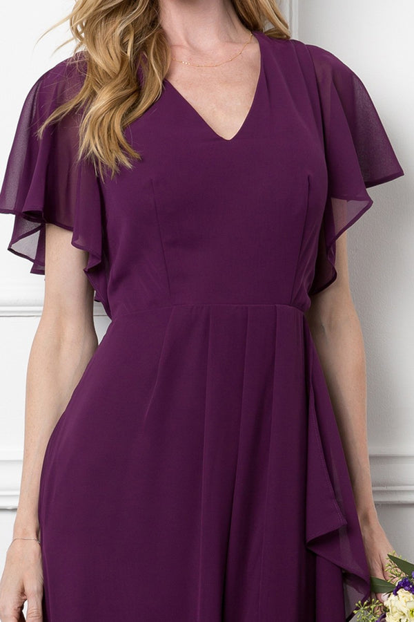 .... Robe de demoiselle d’honneur en chiffon avec manches à volants, fente frontale et poches Élégante robe de demoiselle d’honneur en chiffon, dotée de manches à volants délicates, d’une fente frontale moderne et de poches discrètes. Alliant confort et...