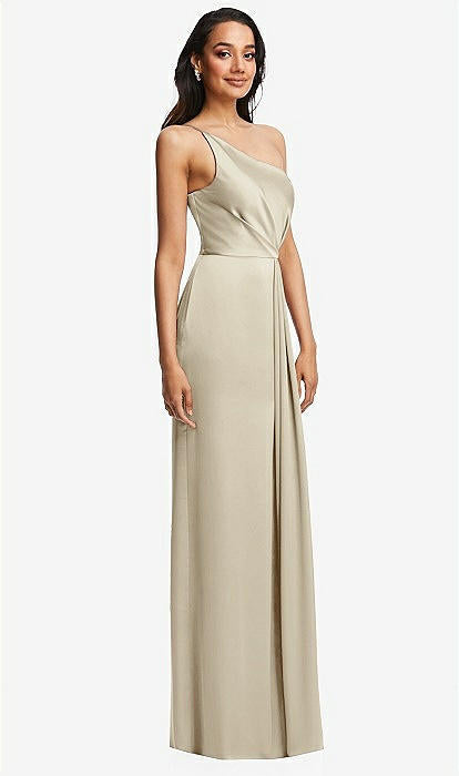 .... Le corsage drapé à une épaule de cette robe longue en satin léger dégage une élégance absolue digne des défilés de haute couture. Légèrement ajustée, elle se prolonge par une somptueuse jupe sirène drapée, idéale pour une soirée...